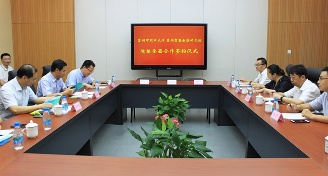 8月7日,蘇州智能制造研究院與蘇州市職業(yè)大學(xué)簽訂“院校全面合作協(xié)議”成功舉行,吳中區(qū)委組織部副部長(zhǎng)沈志楓、吳中區(qū)人社局局長(zhǎng)丁曉娟、吳中區(qū)科技局副局長(zhǎng)秦錚、吳中區(qū)人社局副局長(zhǎng)朱曉東、吳中科技創(chuàng)業(yè)園總經(jīng)理朱芹出席簽約儀式,蘇州智能制造研究院院長(zhǎng)居冰峰、蘇州市職業(yè)大學(xué)副校長(zhǎng)陶亦亦代表雙方簽約。
