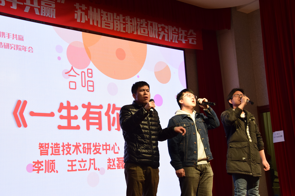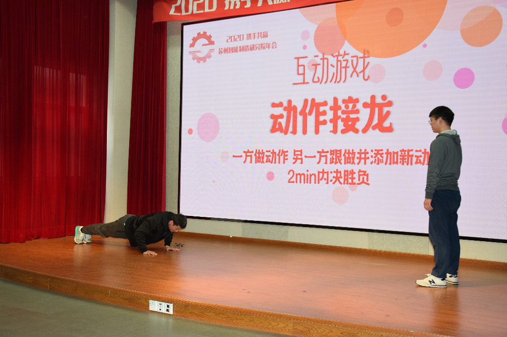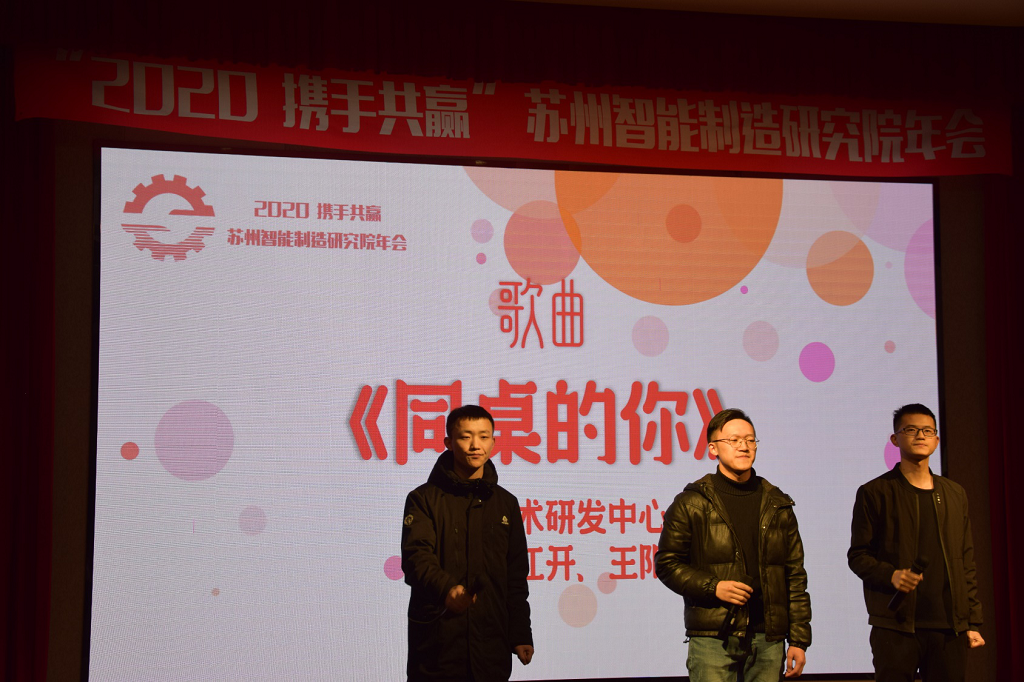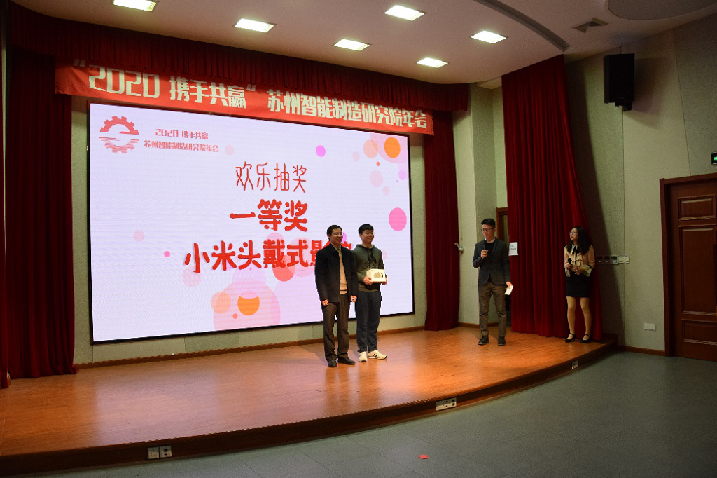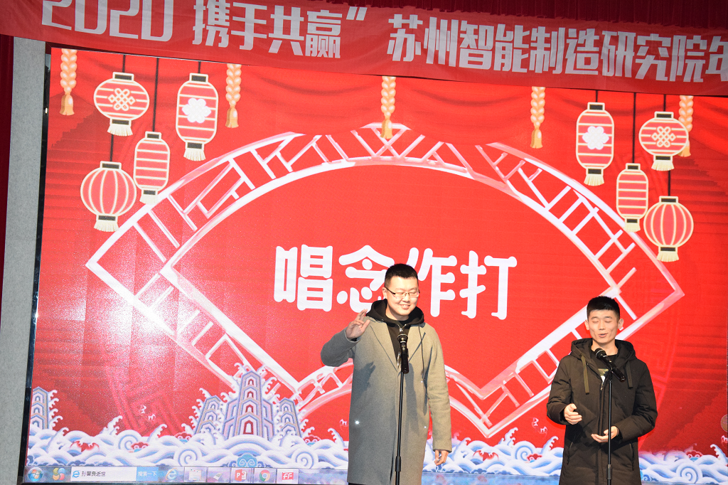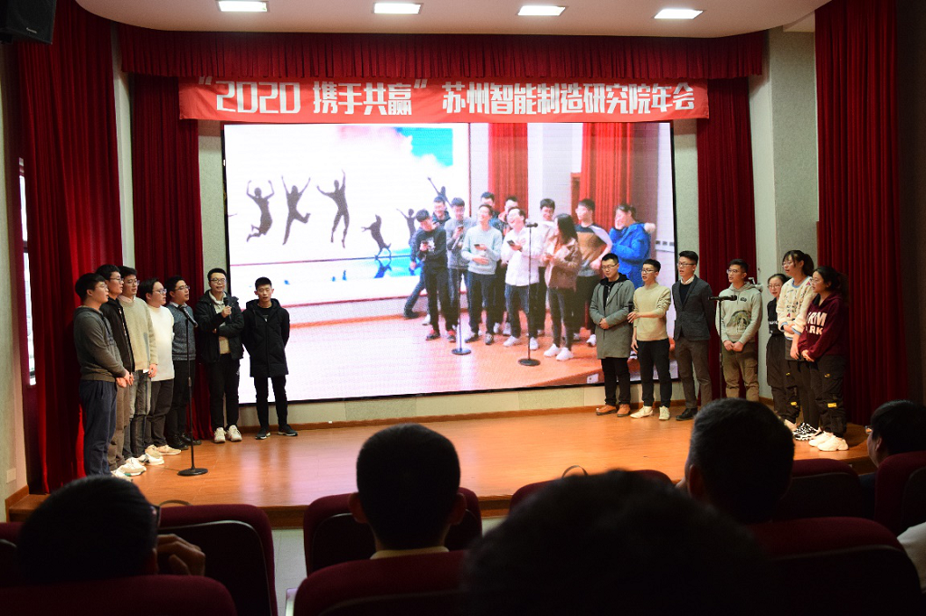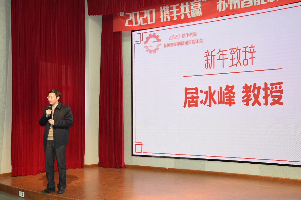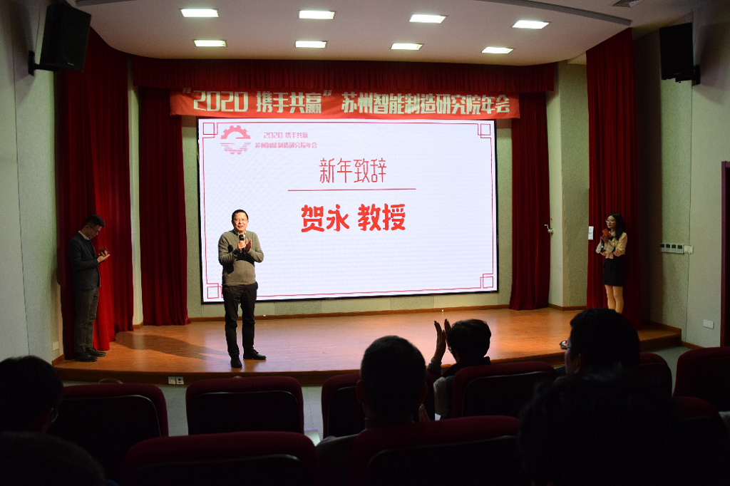 2020年1月14日,我院召開2020年新年年會(huì)。院長居冰峰教授,副院長賀永教授,蘇州市吳中區(qū)科技創(chuàng)業(yè)園朱芹總經(jīng)理等各位領(lǐng)導(dǎo)嘉賓出席本次年會(huì)。年會(huì)以“2020 攜手共贏”為主題,串聯(lián)各個(gè)文藝節(jié)目和互動(dòng)游戲,總結(jié)了2019年來研究院的工作成績,展望了2020年研究院的新發(fā)展。