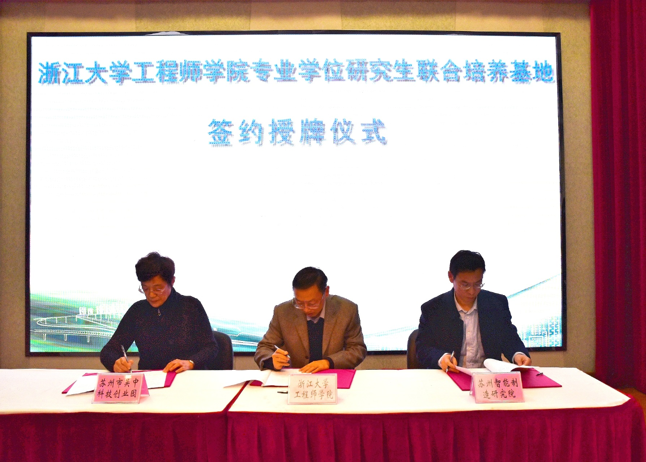 最后,我園、浙江大學(xué)工程師學(xué)院、蘇州智能制造研究院三方進(jìn)行浙江大學(xué)工程師學(xué)院專業(yè)學(xué)位研究生聯(lián)合培養(yǎng)基地簽約,隨后,張瑛、郁文明、陳豐秋、居冰峰、嚴(yán)險峰共同為浙江大學(xué)工程師學(xué)院專業(yè)學(xué)位研究生聯(lián)合培養(yǎng)基地揭牌并授牌。